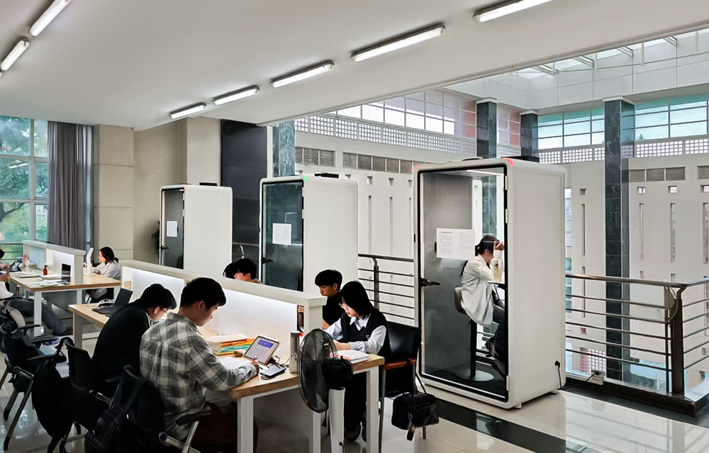 The modular nature of the HECOR Office Pod allows it to be deployed flexibly in every corner of the library—whether in the reading areas on various floors of the main building, in spacious corridors, or even in dimly lit passageways.